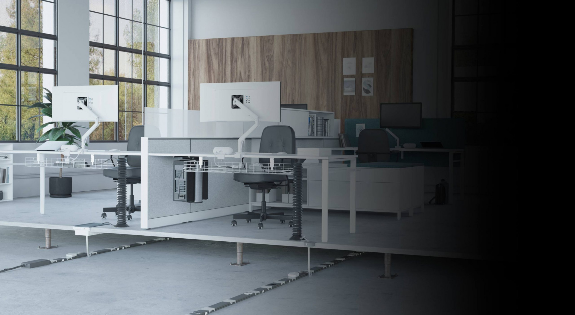 Frees up desktops to aid comfort and productivity